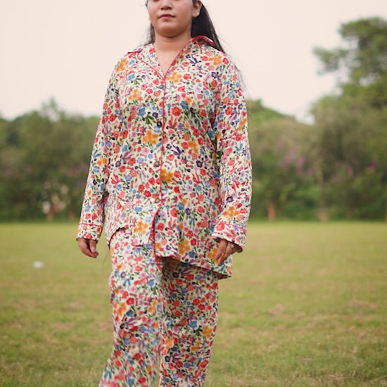 Pure Cotton Night Suit – Stitched & Ready to Lounge - Multi Floral